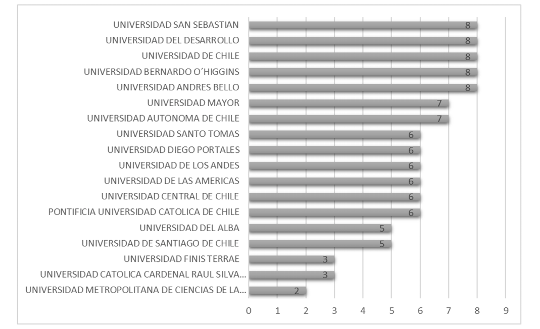 Dado que el presente estudio se centra en programas de formación profesional en salud con una duración de cinco años o más, los cuales son impartidos exclusivamente por universidades, la descripción que sigue se focaliza en las instituciones de educación superior ubicadas en la Región Metropolitana.