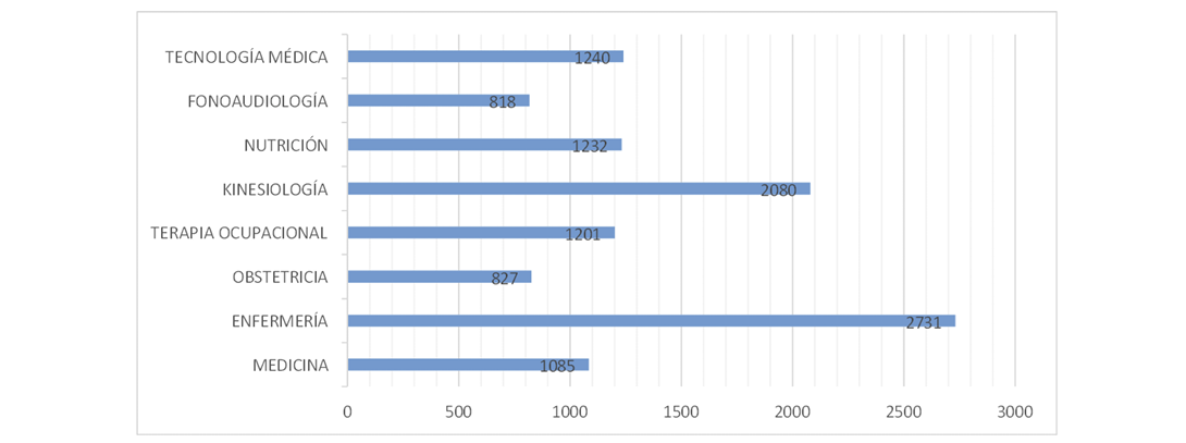 Centrar el análisis en las carreras profesionales del área de la salud, en vez de las técnicas, se explica por la profundidad y alcance de la formación universitaria, lo que implica una carga académica más extensa y un rol clínico e investigativo mayor. Ello se traduce en la posibilidad de acceder a cargos de mayor complejidad y especialización dentro del sistema de salud, a la vez que se abren opciones de posgrado y especialidades clínicas.