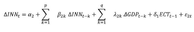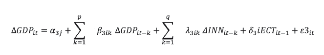 The short-run causality is verified using the Wald statistics, while long-run causality is verified using the statistical significance of the error correction term. For (PAR / PAN / RDE) innovation is the dependent variable.